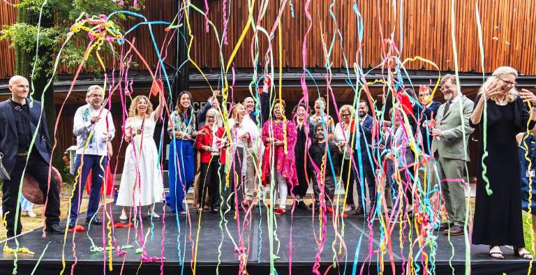 “It is such an honor to stand here today in this extraordinary place in the middle of the greatest park, in the greatest city in the world, and say, We did it! We rebuilt the Delacorte,” said Arielle Tepper, co-chair of the Delacorte Campaign Committee, who served as the board chair of The Public when the campaign launched 10 years ago.