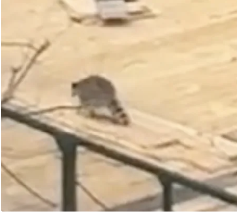 A raccoon was spotted walking across scaffolding on the Upper East Side on April 14, and when someone posted to the social media platform Citizen that the animal was “rabid,” it prompted a police response.